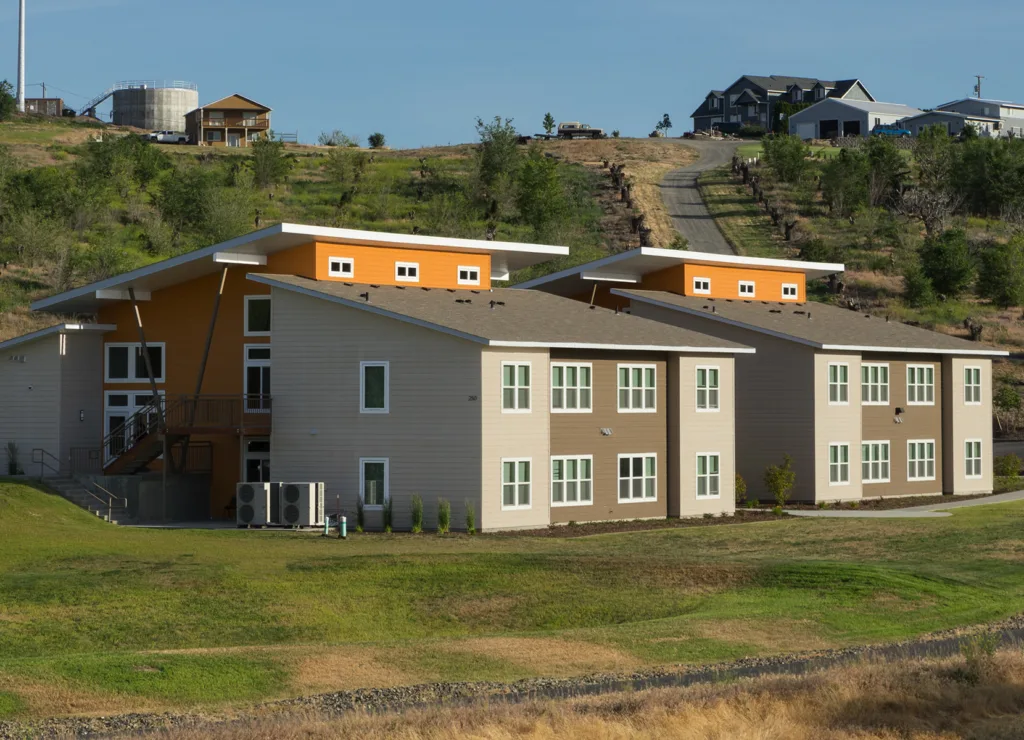 An example of this type of project is the Cosecha Court – a seasonal farmworker development, owned and operated by the Yakima Housing Authority. The development provides low-income housing for residents who earn part of their income from farm work. Agriculture is a $51 billion dollar industry in Washington state, contributing to 13% of the state’s yearly economic activity. The Cosecha Court development and others like it are critical to the more than 160,000 seasonal workers who make our food available and affordable, in a state where the median rental price has risen 26% from 2000-2021, adjusted for inflation.1