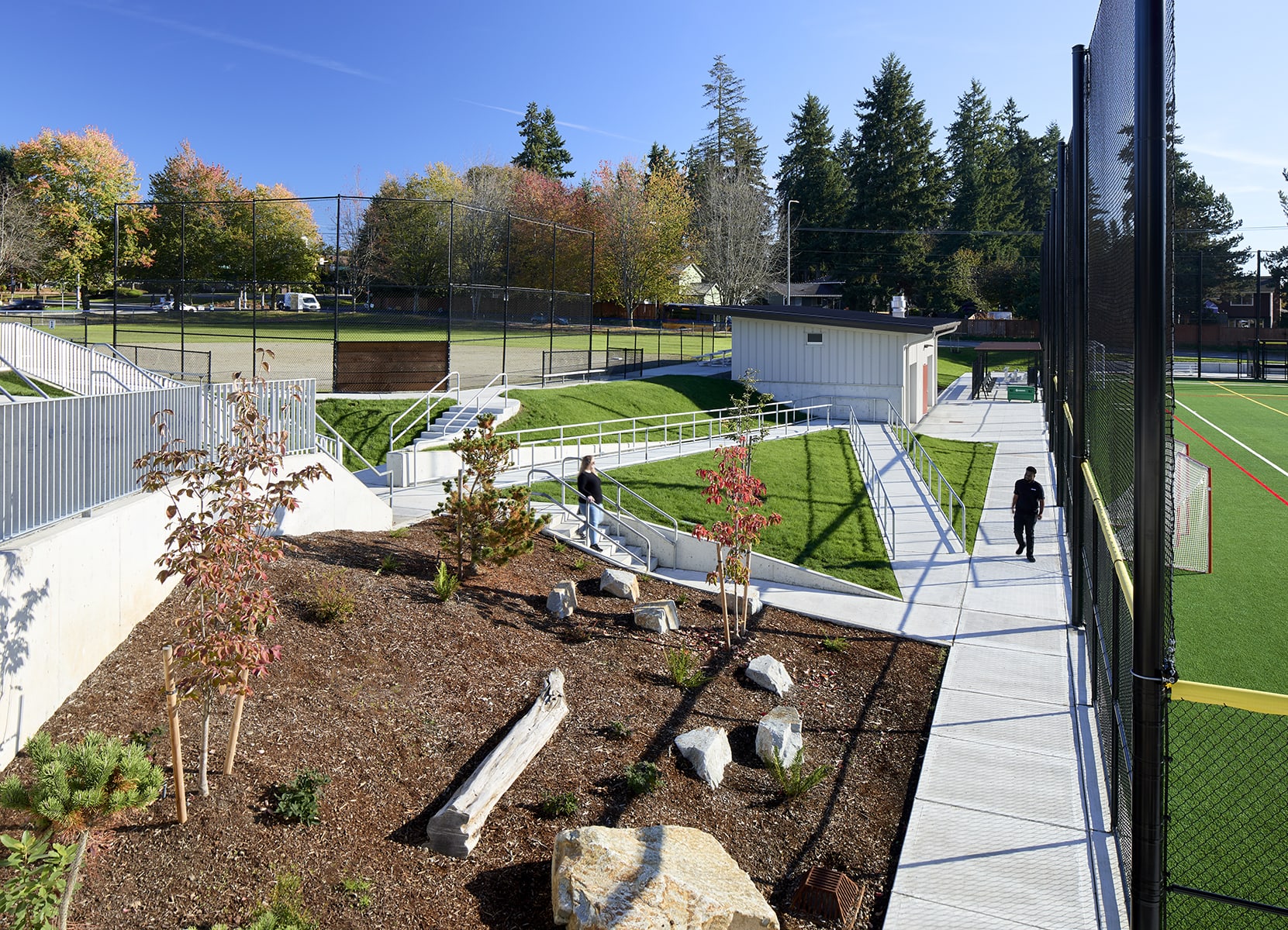As always, the AHBL team got creative, using an array of public engagement strategies like an online forum, pop-up park events, door-to-door leaflets, and connections with youth sports leagues to gather input from a wide cross-section of park users. The final park design and development provides the City of Kirkland’s first, lighted synthetic turf field, along with, inclusive playground and play hill, all-season restrooms, additional picnic shelters, new storage buildings, some cool and inspirational artwork, and the ever popular and much needed additional parking.