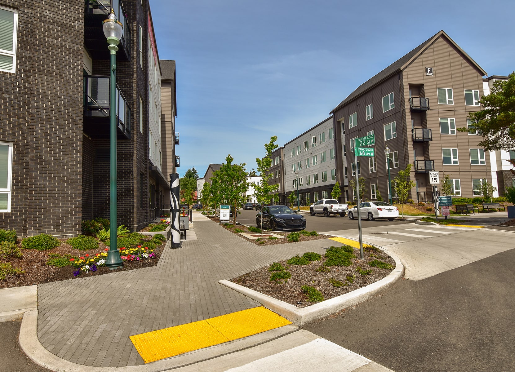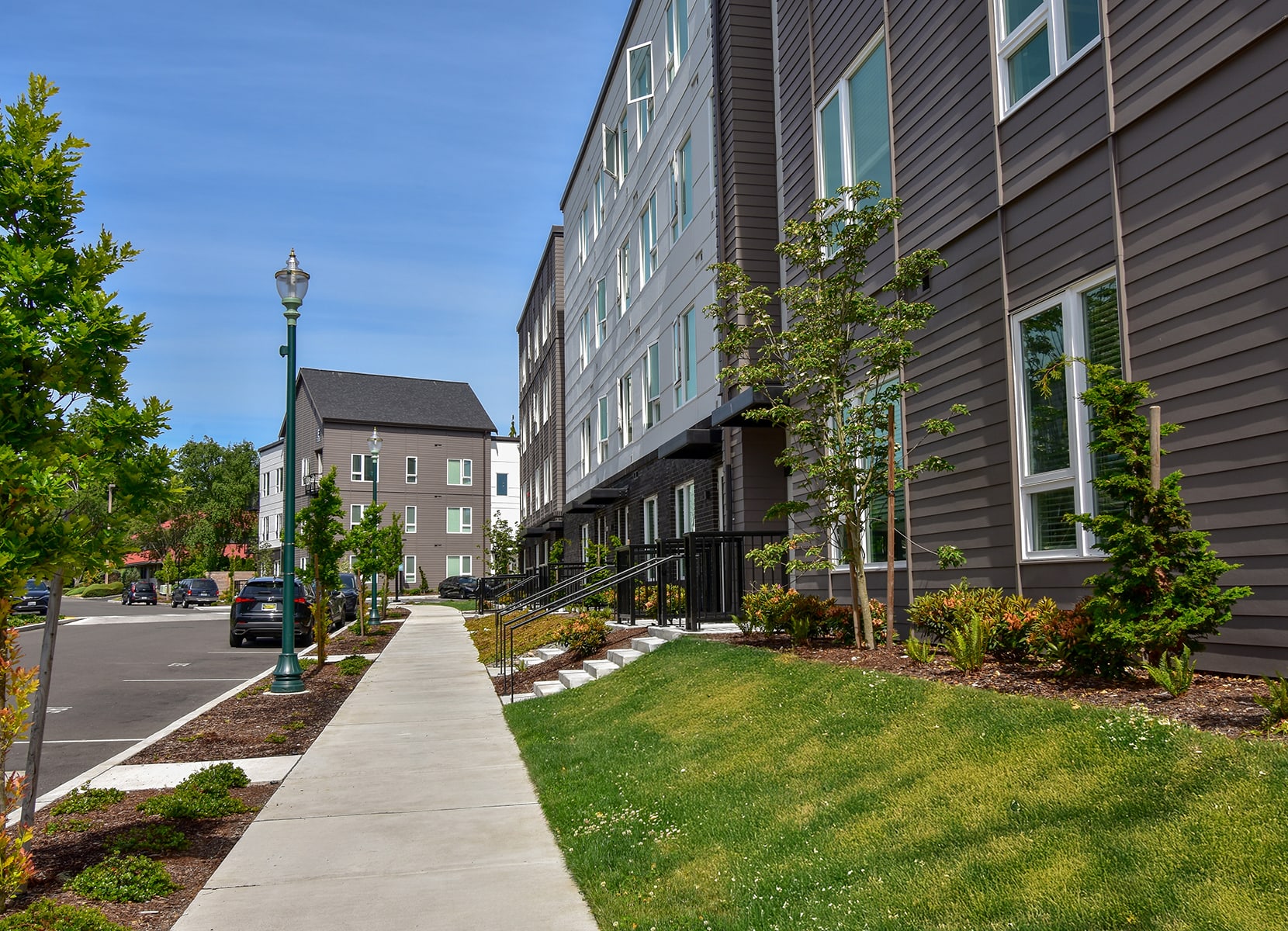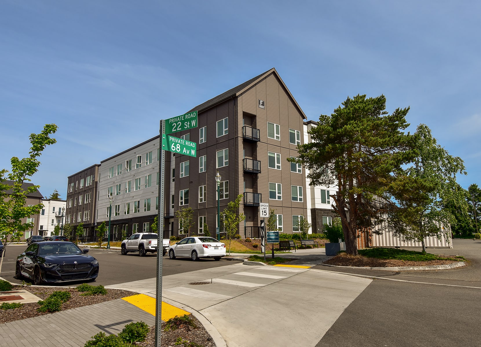 The Alta University Place Apartments project transformed an underutilized commercial site into a sustainable, pedestrian-friendly residential community in University Place. Spanning 277,000 SF, the development includes 272 market-rate homes across nine residential buildings. AHBL provided civil engineering, landscape architecture, land use planning, and land surveying services. Our team designed sewer, stormwater, grading, and water systems, while landscape architects crafted courtyards, playgrounds, and community parks. Land use planners managed the SEPA Environmental Review, and land surveyors conducted boundary, topographic, and ALTA/NSPS surveys to support development.