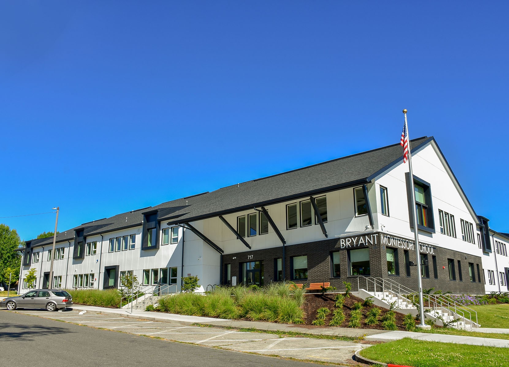 AHBL provided civil engineering, land use planning, and land surveying services for the replacement of Bryant Montessori Elementary School, a K–8 facility originally built in the 1960s. Our team managed demolition of remaining building slabs and portables, along with extensive site improvements including utilities, stormwater upgrades, and street enhancements. We guided the SEPA environmental review process, prepared permitting documentation, and supported community outreach throughout planning. AHBL collaborated with Tacoma Public Schools, TCF Architecture, and Skanska Construction to deliver a modern, sustainable learning environment. The project also included new playgrounds, playfields, and improved parking to serve the Bryant Montessori community.