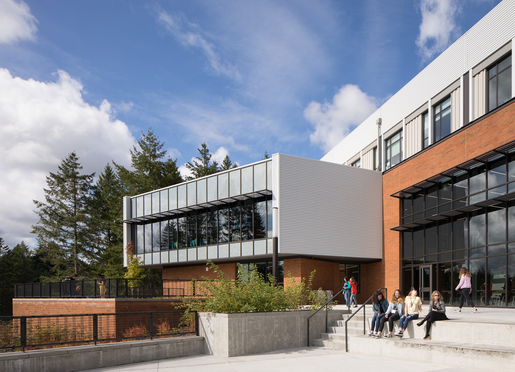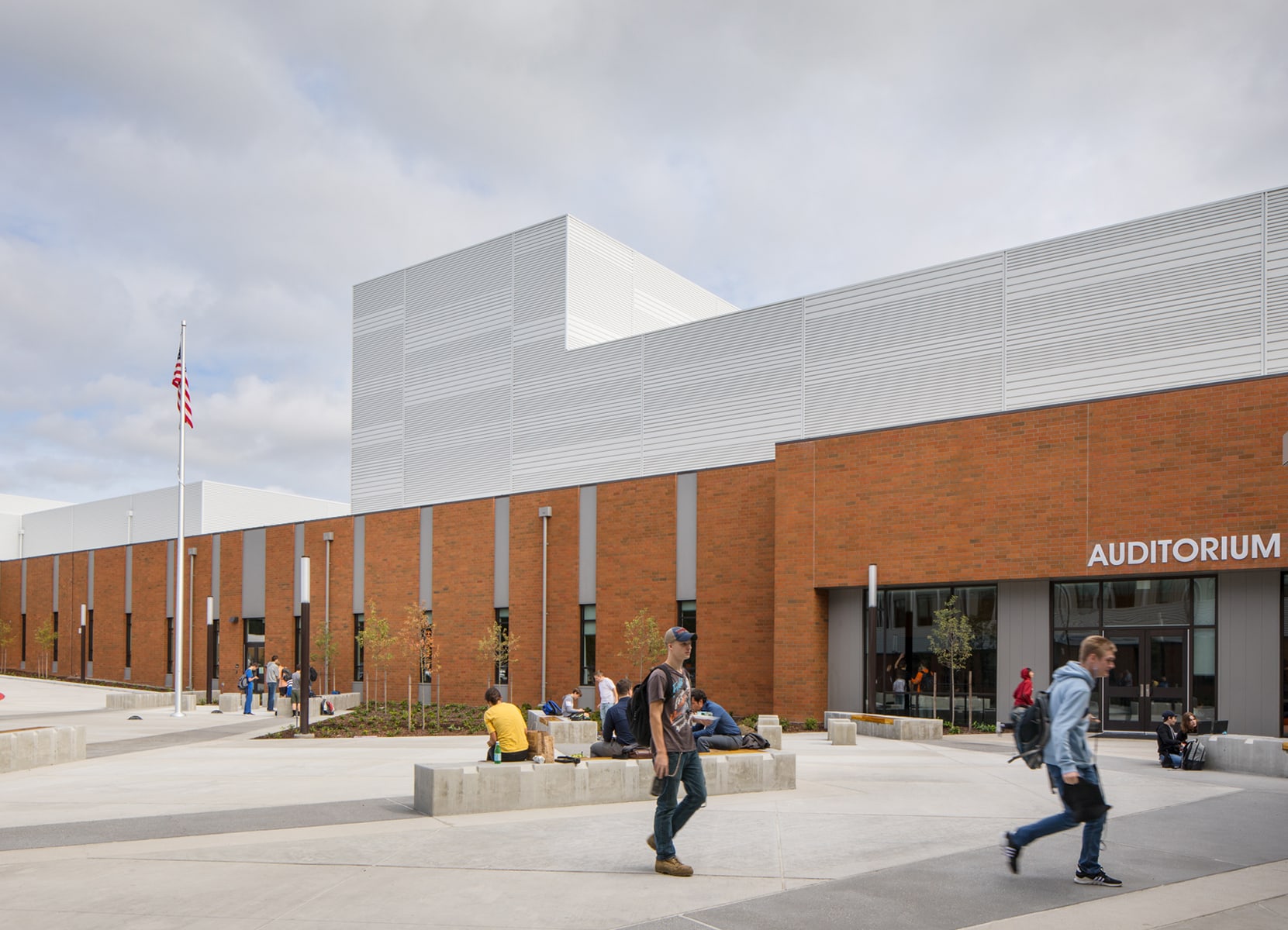 The 59-acre site has a 100 foot change in elevation, which made grading a challenge. AHBL’s civil engineers worked with our in-house landscape architects, as well as the architect, geotechnical engineer and structural engineer to coordinate the design and engineering efforts required. Athletic facilities at the high school include a new football/soccer field with synthetic turf and track, field lighting and seating for 1,500 spectators, one baseball field, one softball field, one soccer field, and eight tennis courts.