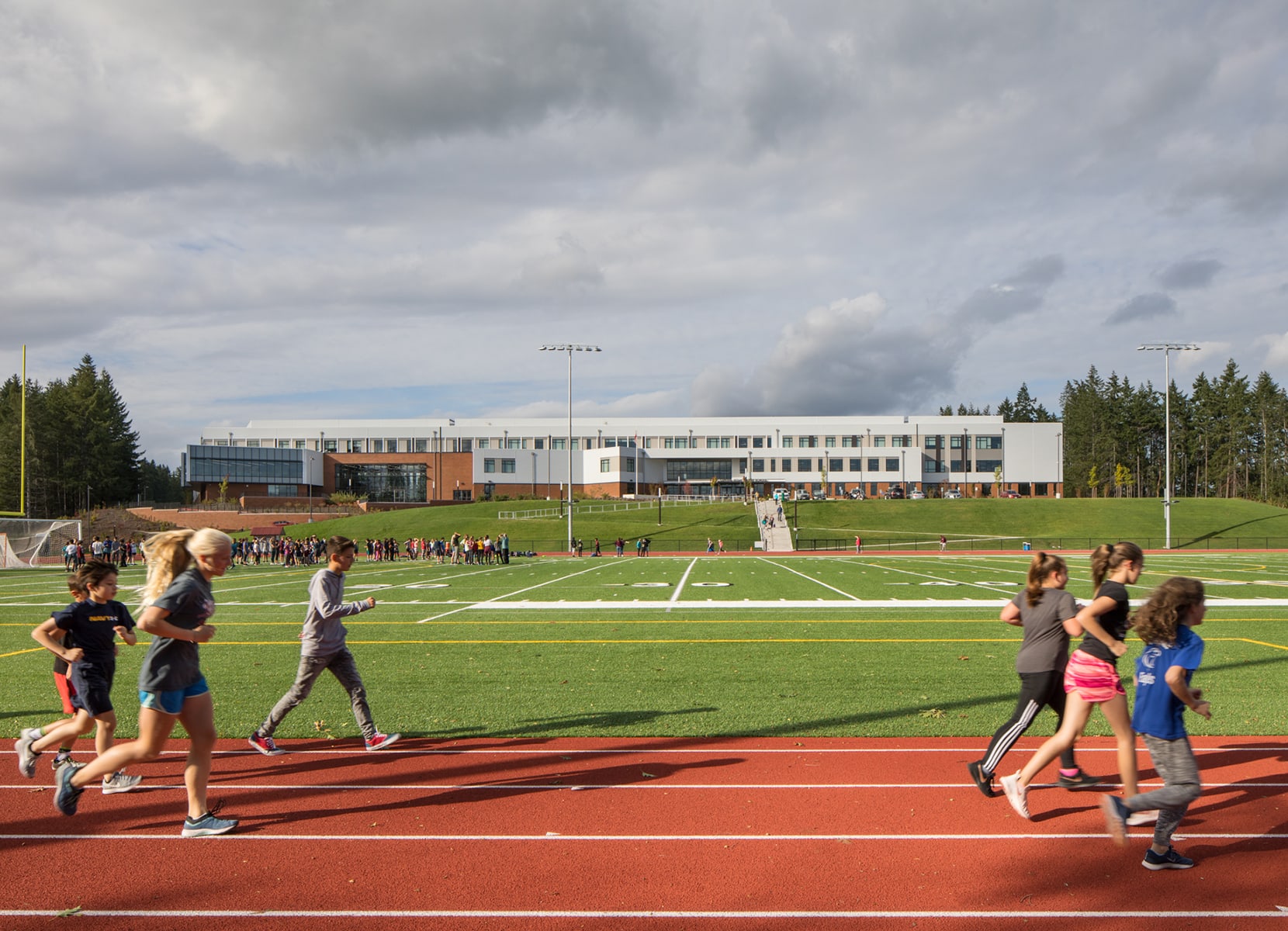 AHBL provided civil engineering, landscape architecture, land survey, and land use planning services for this project to replace the existing Central Kitsap High School and Middle School. The middle and high school are co-located on the existing school site, which required a phased approach to construction. The schools operate separately, but share facilities such as a kitchen and auditorium. The project was phased to allow the middle and high school to remain open throughout construction. This required our engineers to manage challenges such creating temporary parking for students and staff, as well as careful coordination to ensure utilities to each building remain online.
