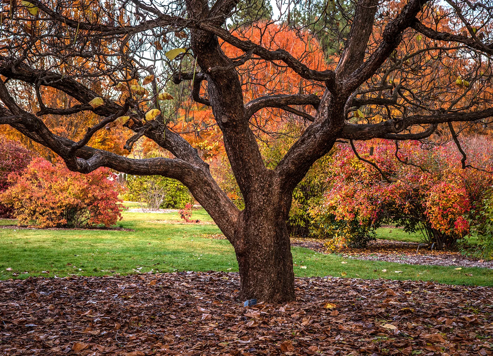AHBL landscape architects spent three years in design and construction and a dialog with Chihuly Studios to ensure the garden and art were conceived to excite visitors to the exhibition. The north of the garden nearest the monorail features art in red, yellow, black and magenta with plants like crimson camellias, scarlet daylilies and hardy fuschias. On the east side of the glass house the focal point is the reclaimed old-growth Western Cedar logs and lavender reeds surrounded with the purple leaved Aster Prince and an assortment of ferns that create a primordial effect. On the south end of the garden the largest planting of handkerchief trees in Seattle will mature to form a canopy that will be beautiful with time.