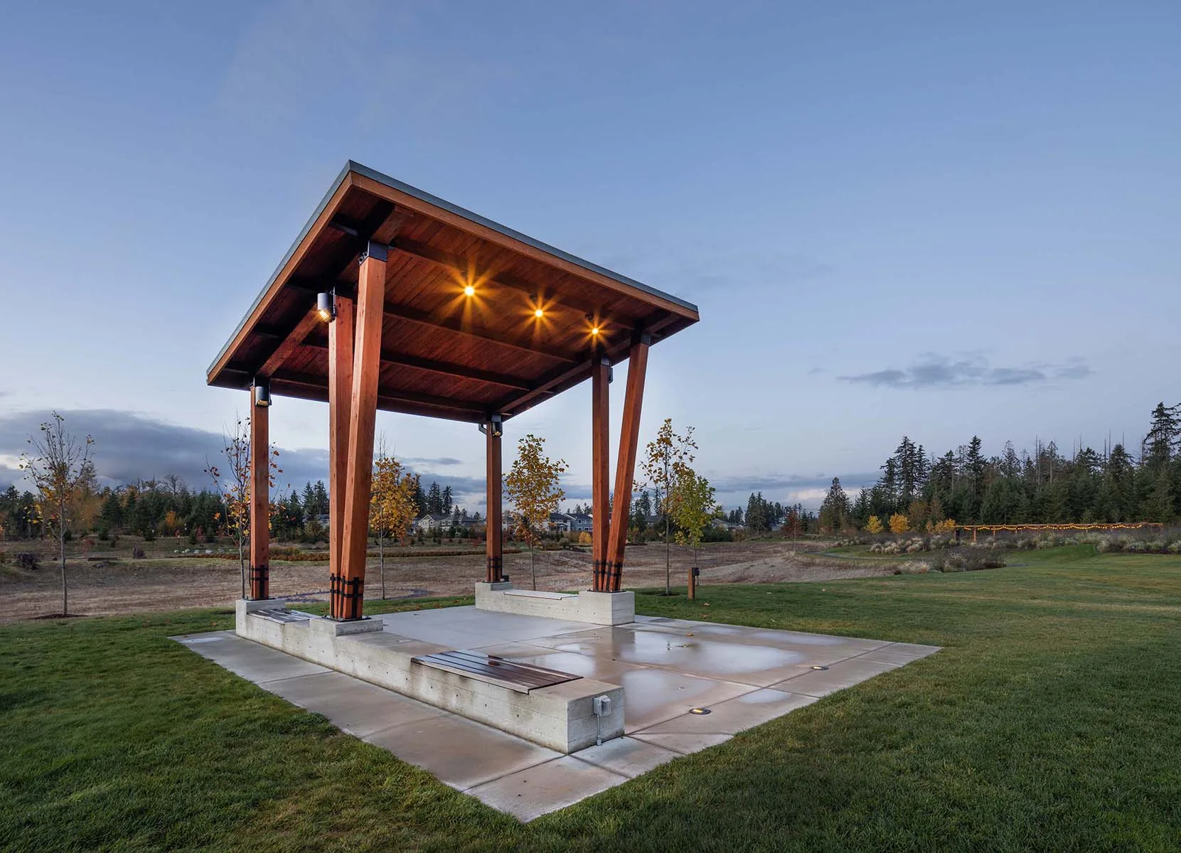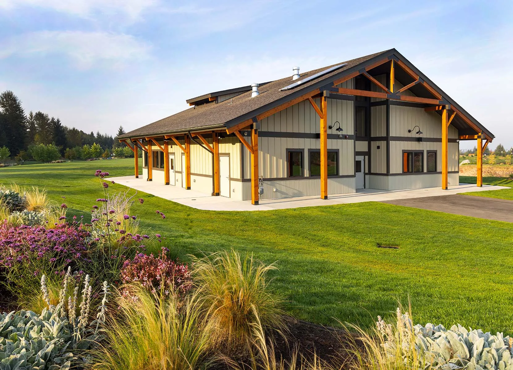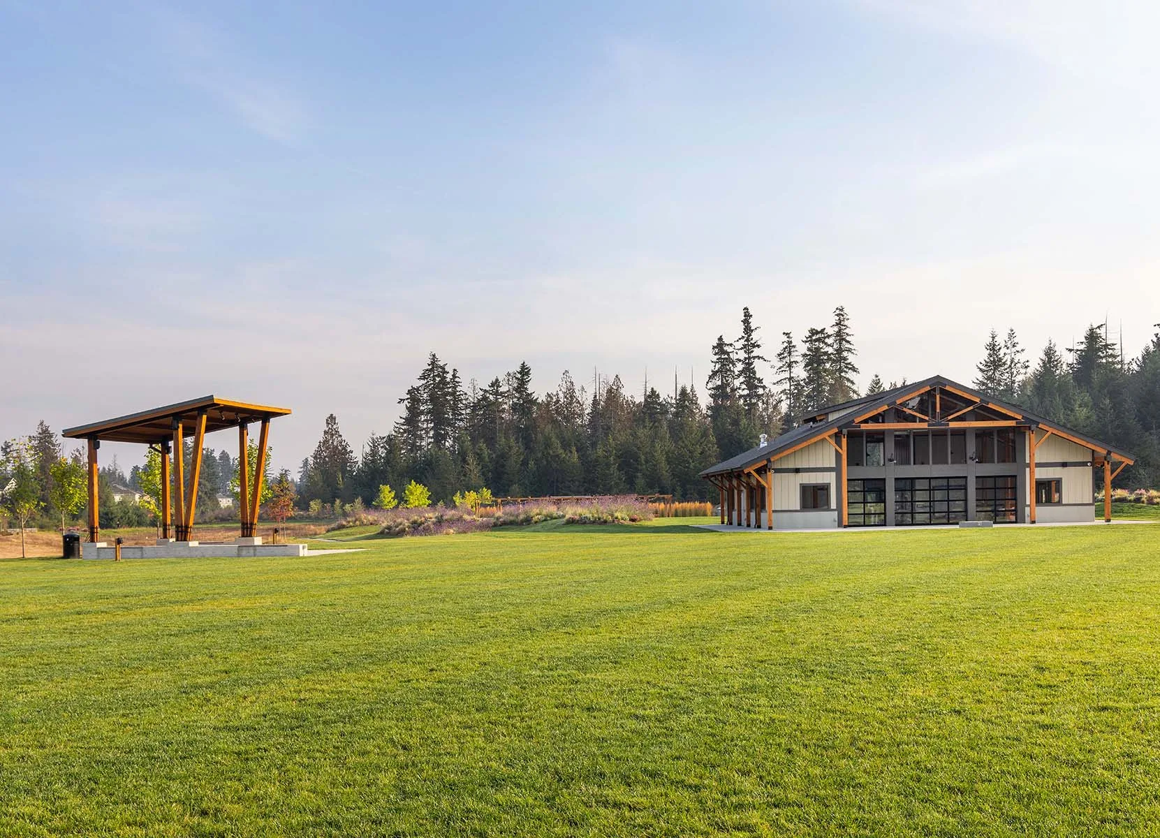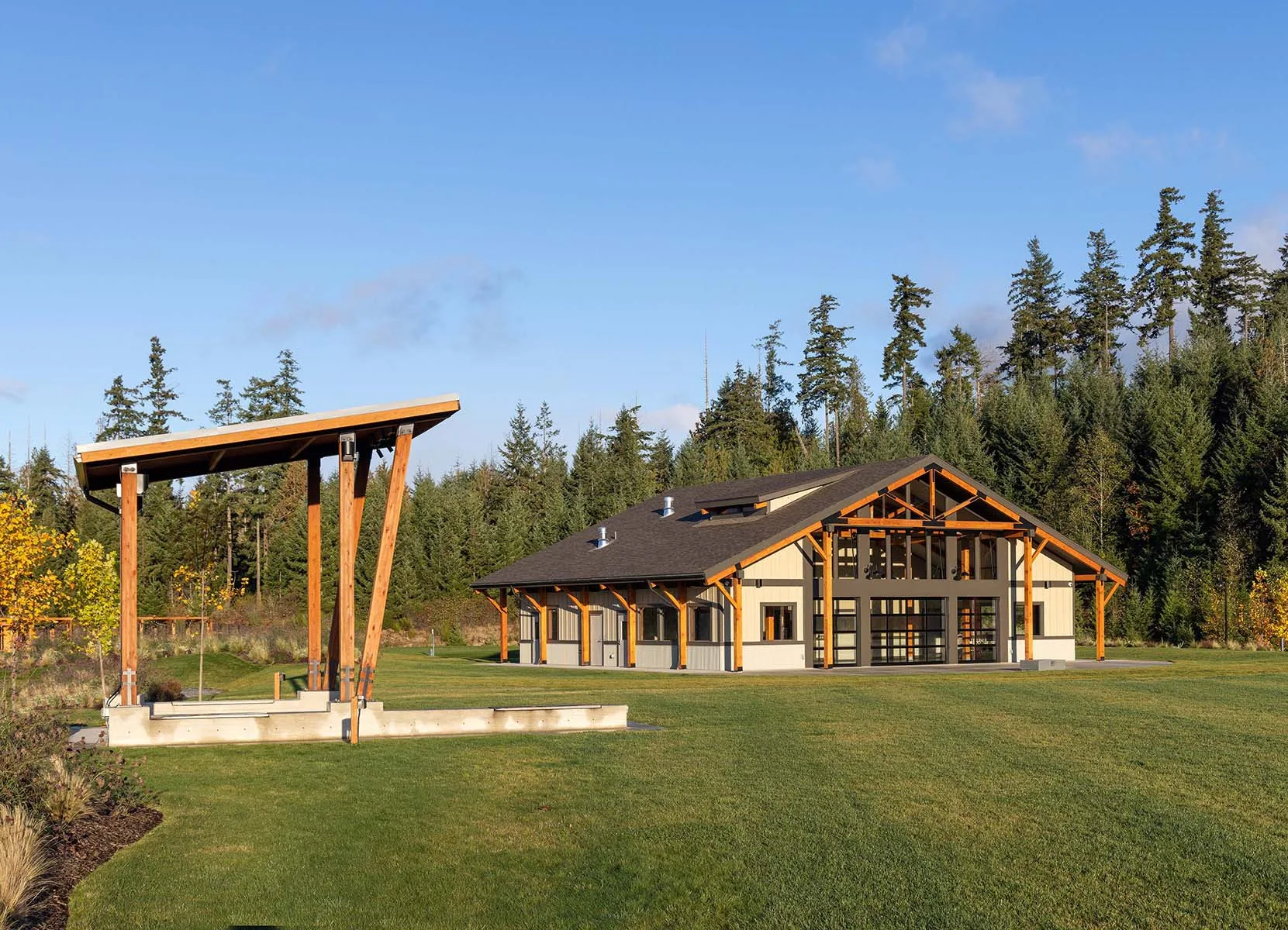 AHBL’s structural engineering scope included gravity and lateral system design for the building framing and foundations, including detailed timber connection design. Civil engineering services encompassed site grading, utilities, water and sewer systems, paved pedestrian circulation, and stormwater conveyance to an adjacent pond.