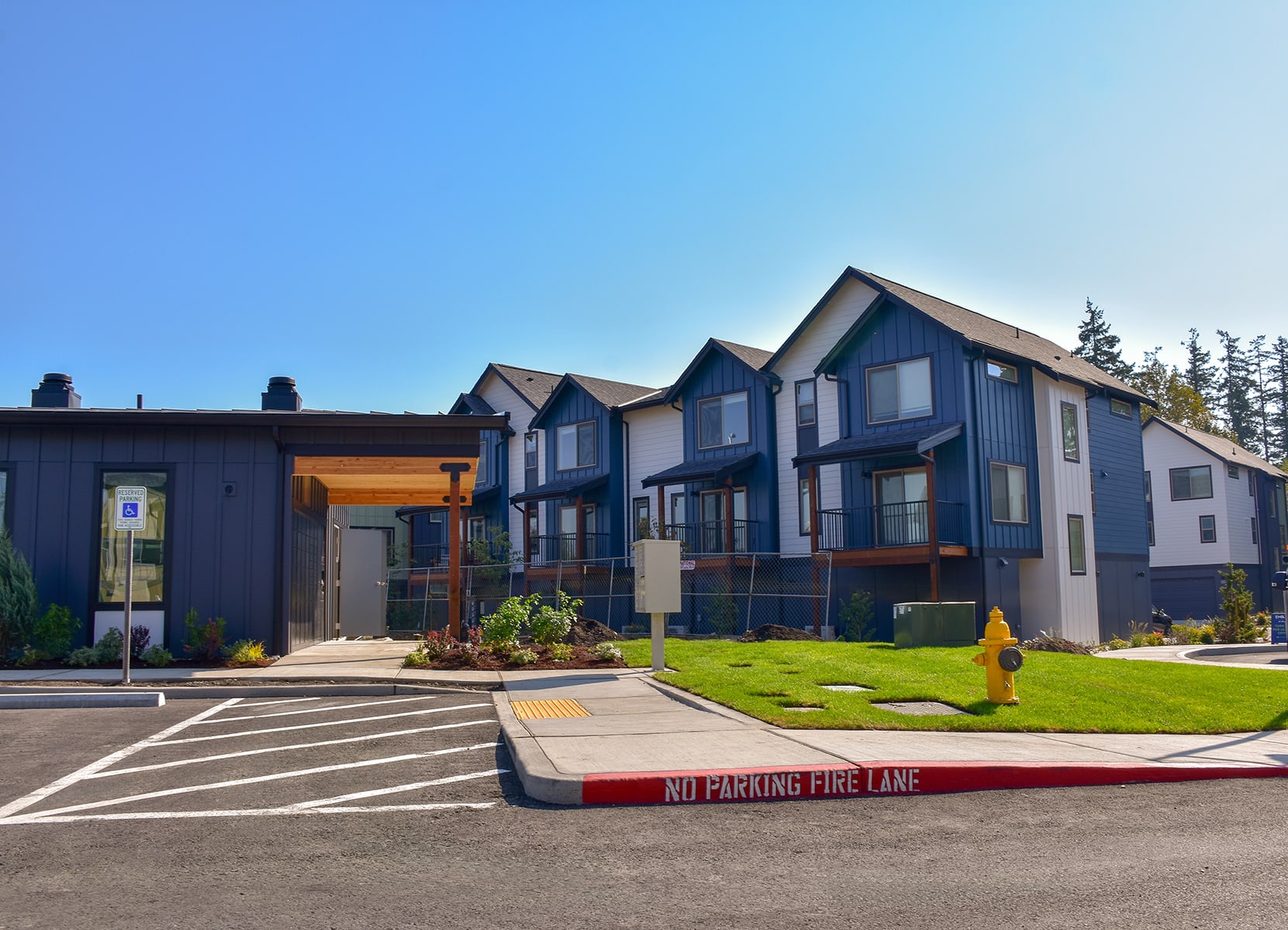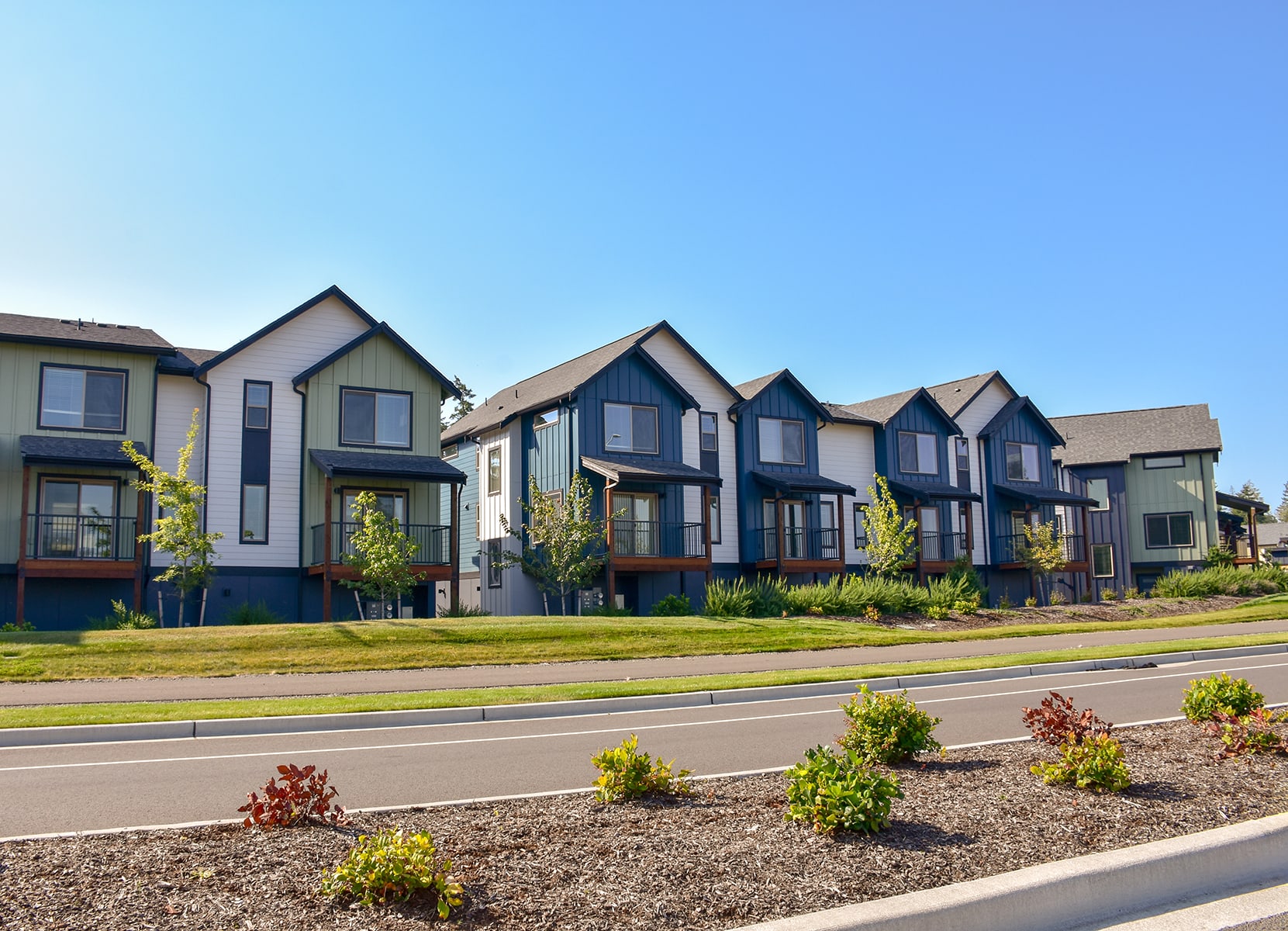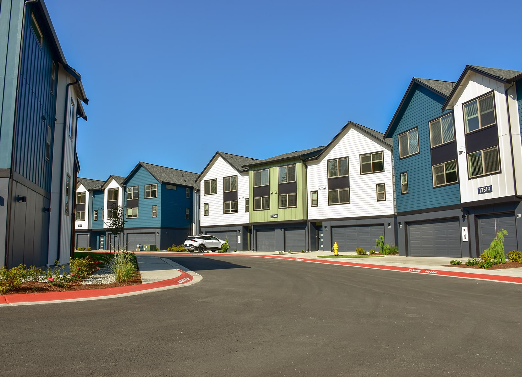 AHBL provided full-service civil engineering and permitting for Uplands Townhomes Phase I, an 86-unit multifamily community in Puyallup, WA. The scope included roadway design, site grading, sewer, and stormwater systems, as well as coordination with wetlands and buffer areas surrounding the site. This project was part of the larger Uplands 320 Master Planned Community by Tarragon, for which AHBL also delivered civil engineering and land surveying for approximately 1,100 homes, preserved wetlands, open spaces, and a primary park oriented for views of Mt. Rainier. A pedestrian trail at the southern corner connects the townhomes to the broader community.