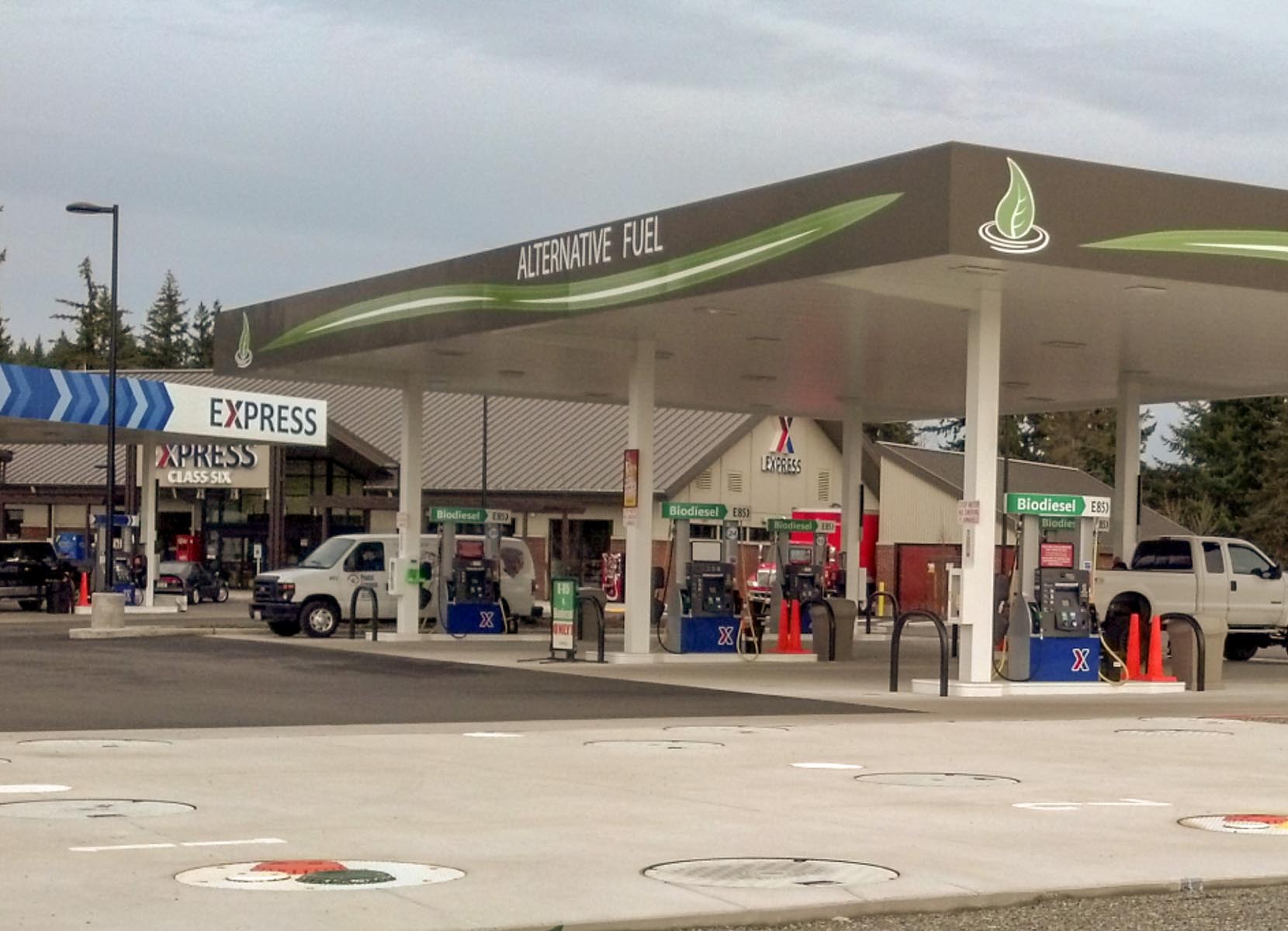 The civil design included a catch basin and conveyance pipe to collect onsite runoff from the refueling island and paving. The conveyance pipe connects to a stub which discharges to an oil and water separator prior to discharge to a Bio-Infiltration Pond. The proposed paving east of the refueling island will sheet flow to offsite paving and storm system that discharges to a rain garden. Structural services consisted of reviewing the 4,450-SF pre-engineered metal refueling island canopy design.