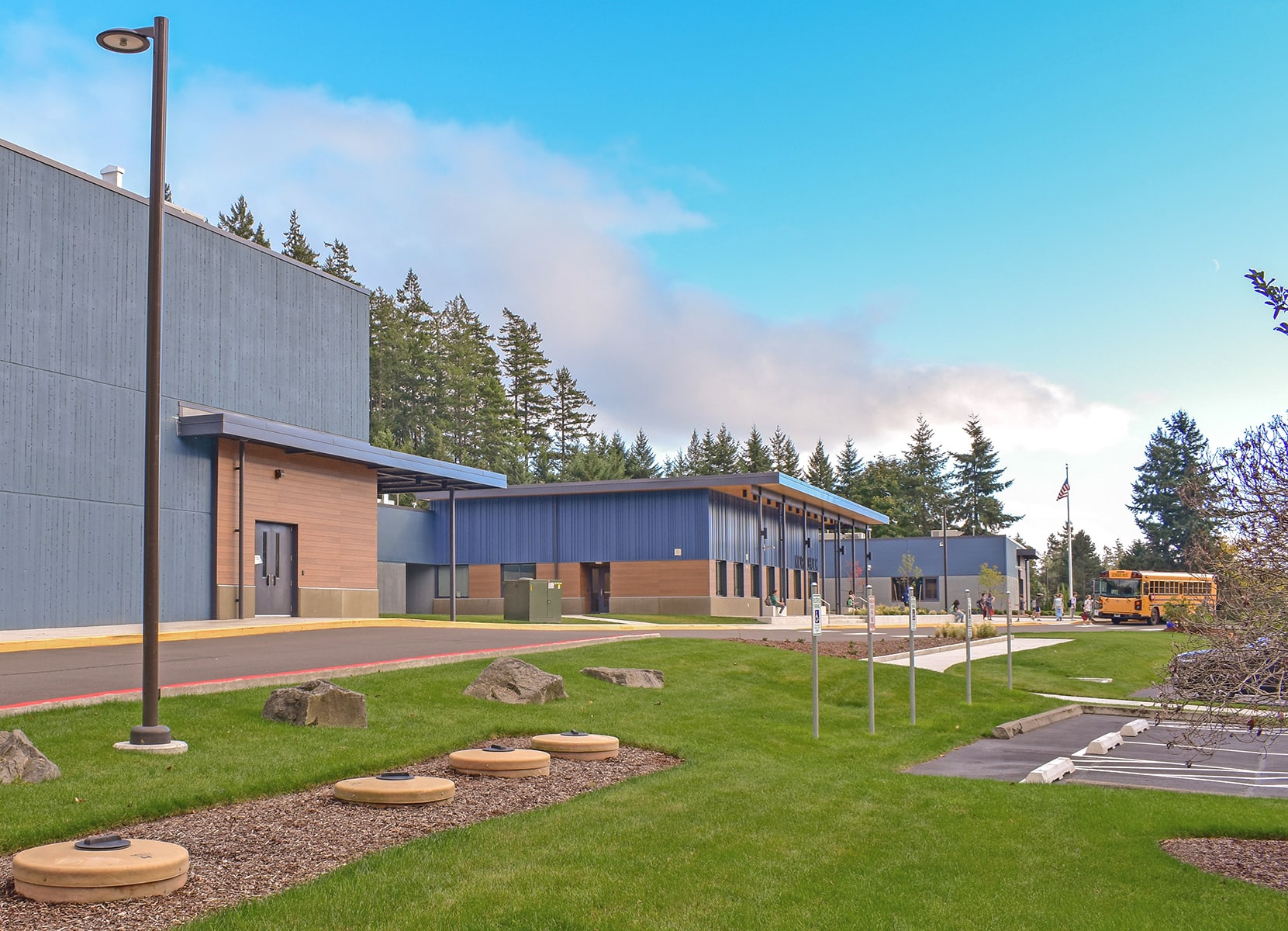 In 2019 voters approved a $198.55M bond measure to build new schools and to upgrade Kopachuck Middle School to increase capacity and improve access. AHBL provided land use planning, civil engineering, and landscape architecture services to support building modernization improvements.
