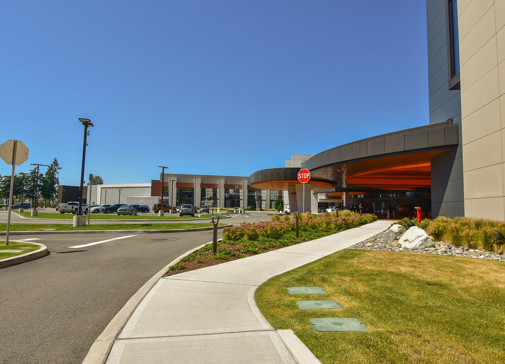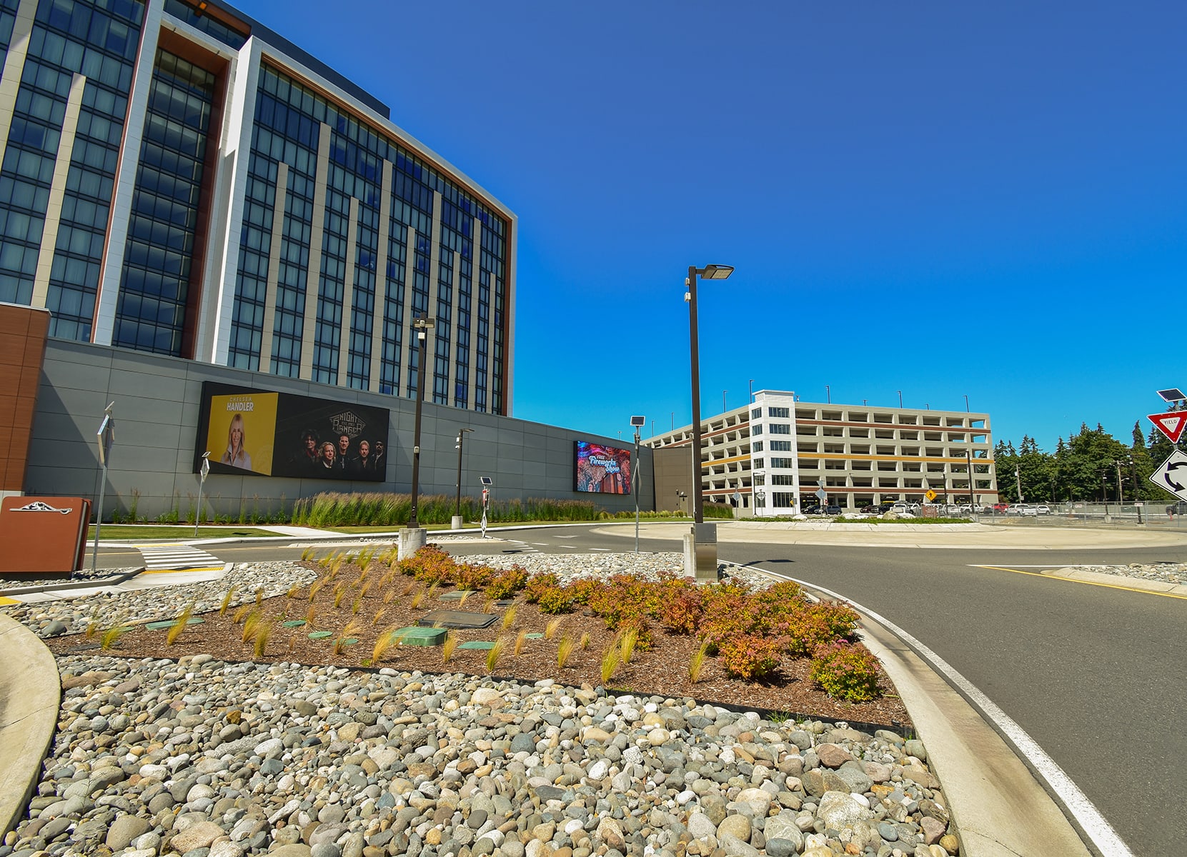 AHBL provided civil engineering, landscape architecture, and land surveying services for the Muckleshoot Casino’s new 18-story resort hotel expansion which was designed to have views of Mount Rainier, the Olympic Mountain Range, and the Seattle Skyline. The new glass tower features 400 guest rooms, expanded gaming space that includes 2,600 slot machines and 105 table games, an indoor pool and spa, and a rooftop steakhouse. A new parking garage was also constructed to enhance visitor experience and improve safety and accessibility. Early phases of work also included the addition of a 20,000 SF events center, three casual dining options, and Caesars Sportsbook.