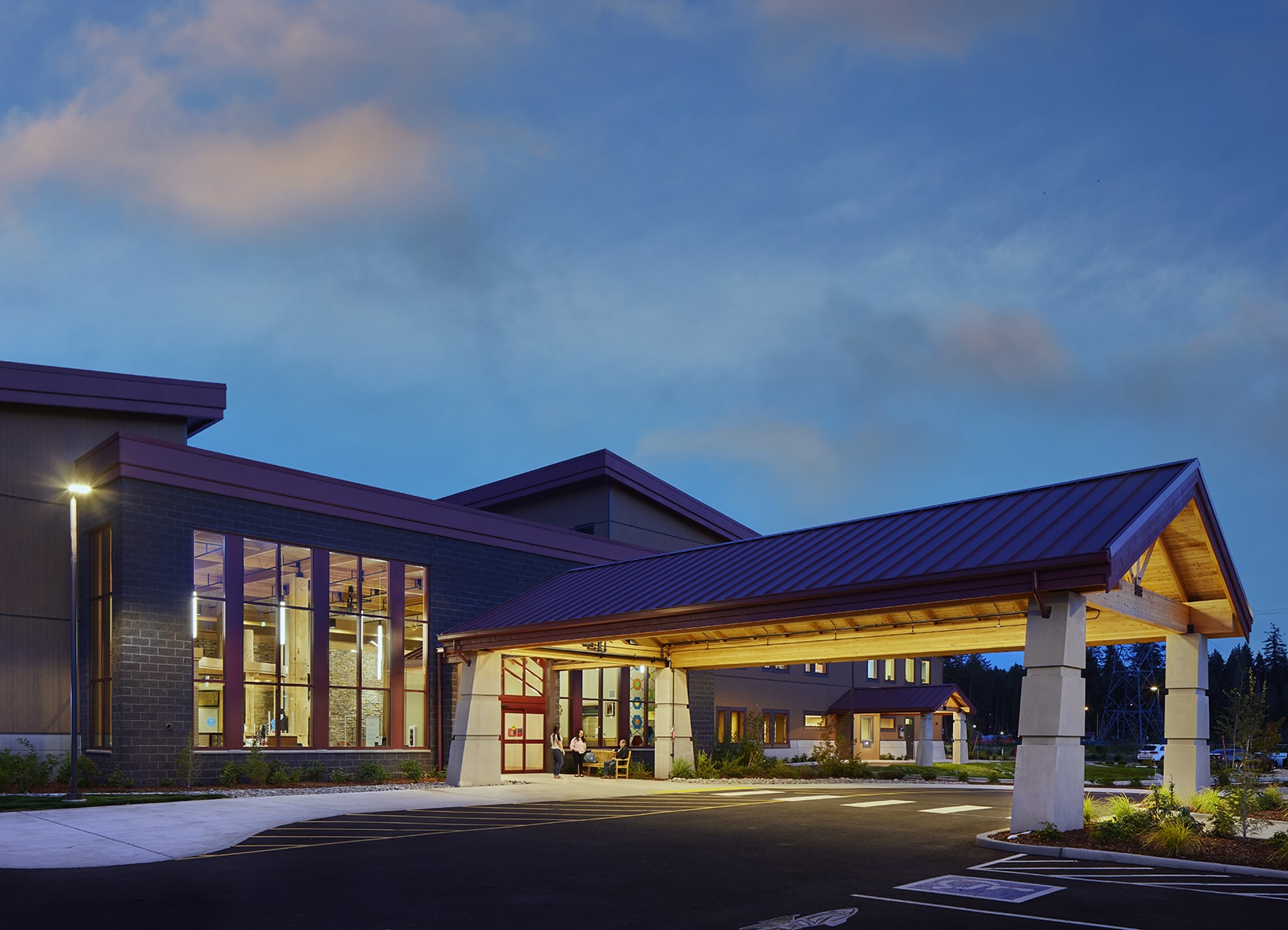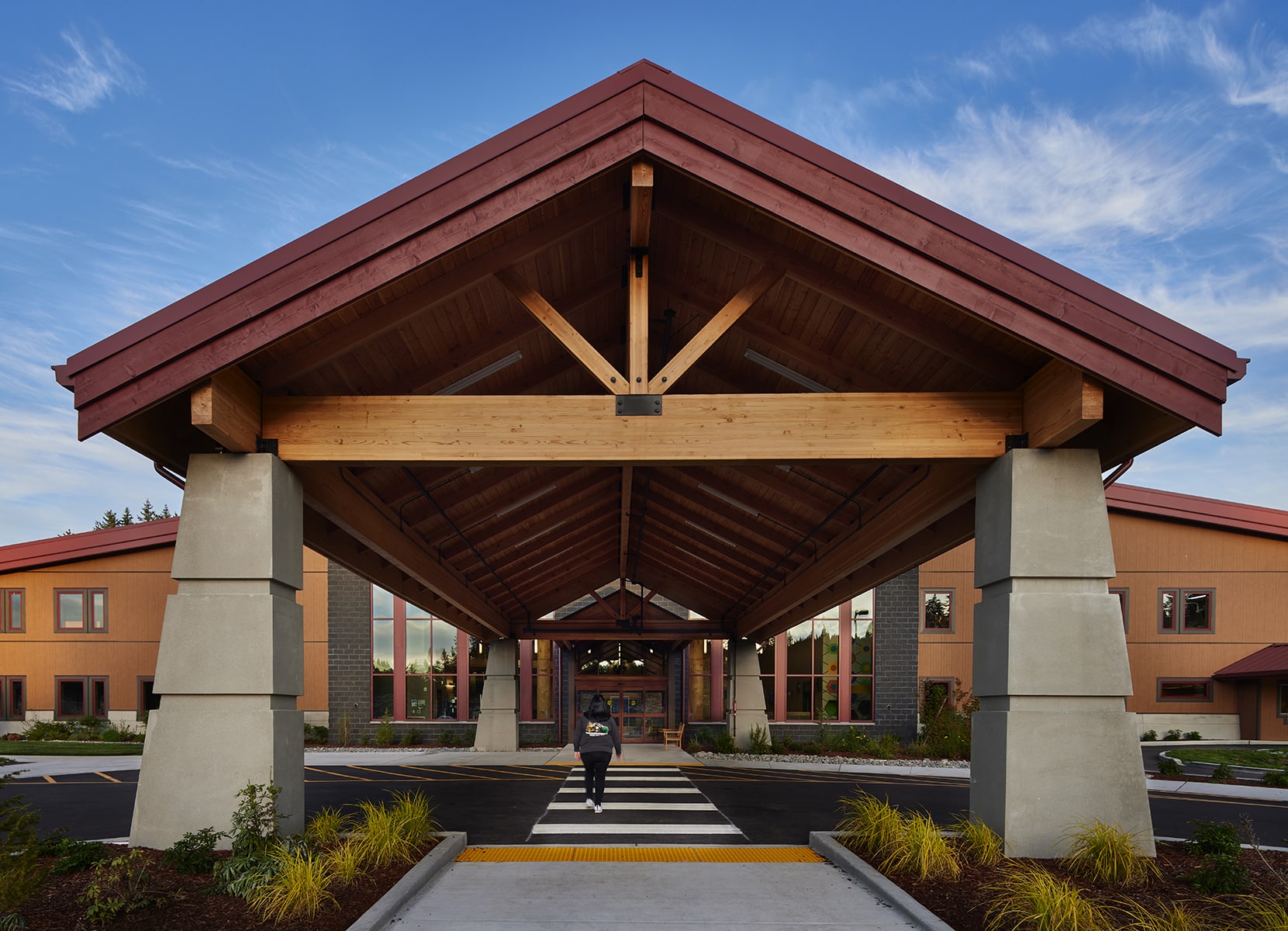 AHBL provided structural engineering services for the new Nisqually Tribe Health and Wellness Center in Nisqually, WA. Structural services included the creation of schematic design and design development, engineered construction drawings, reviewing and editing structural specifications in coordination with KMB architects. Structural design and detailing incorporated elements of expressed timber structure at waiting room lobby and Healing room consistent with Native themed construction.