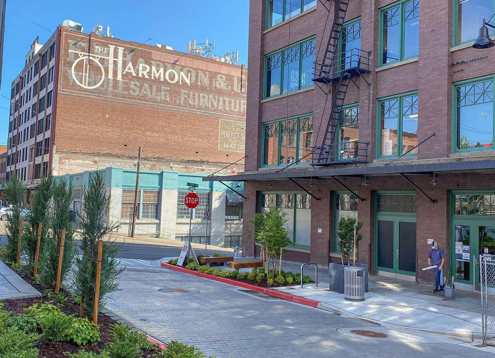 The development at Brewery Blocks revitalized over 42,000 SF of dining and retail space in the historic area of downtown Tacoma. Bordering the University of Washington Tacoma campus on the north Brewery Blocks is located off the Foss Waterway Bridge on South 21st Street. AHBL provided civil engineering, landscape architecture, and land surveying for the design and construction of frontage street improvements associated with a two-block section. The project required road and utility improvements to Commerce Street from South 23rd Street to South 21st Street including new sidewalks and intersection features the improved accessibility, pedestrian safety while meeting current ADA requirements. Other frontage improvements included development of new curb and gutters, ramps, driveway entrances, and doorways. The AHBL design team worked coordinated with the City of Tacoma to meet site drainage requirements and address comments throughout plan review, in addition to Tacoma Water Department to coordinate new utility services on site.