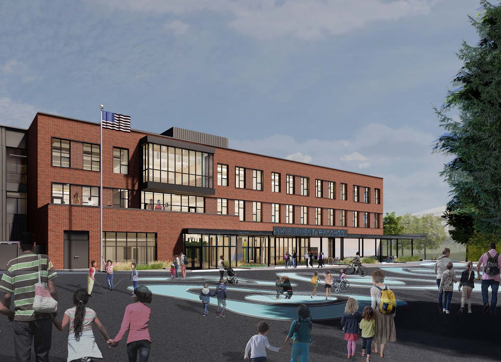 In support of Mahlum Architects, AHBL is providing civil engineering services that include grading, storm drainage, on-site stormwater management (OSM), and water, sewer, hardscaping, and street improvements for the replacement of Alki Elementary School. The current 45,400 SF school houses 19 teaching stations for roughly 309 K-5 students, and the new school will be over 79,000 SF with 35 teaching stations for 542 K-5 students, plus a modernization to the existing gym. Services also included improving the outdoor play area and decoupling water, sewer, and storm drainage of the existing Community Center from the school utilities. The new school is anticipated to open in Fall 2025.
