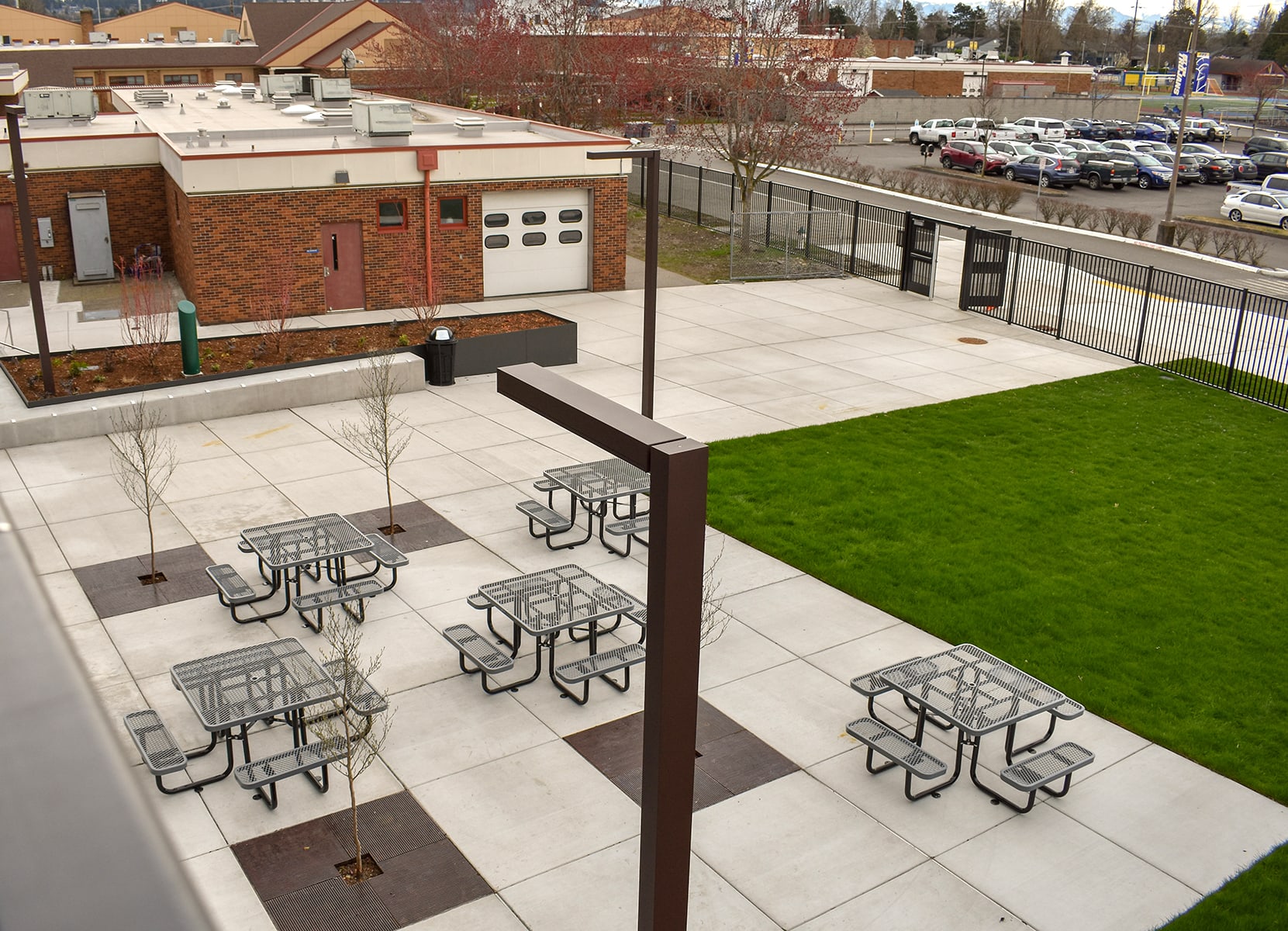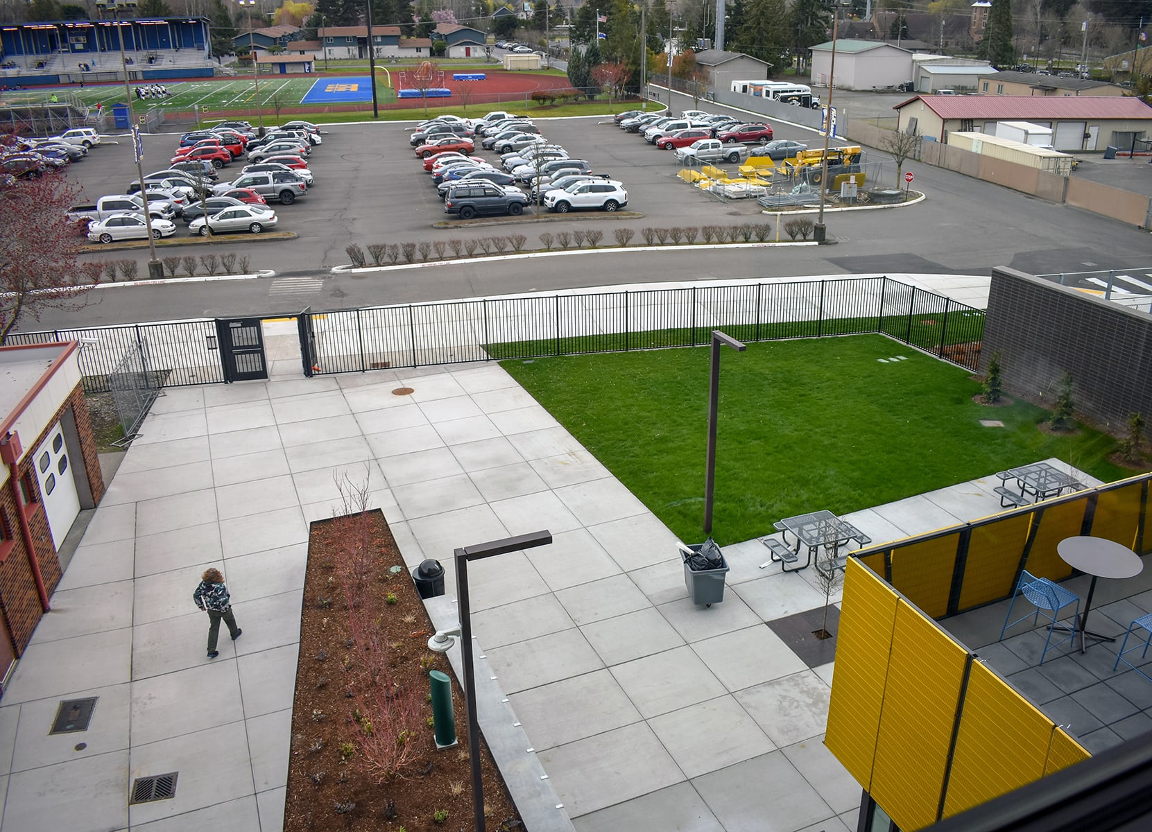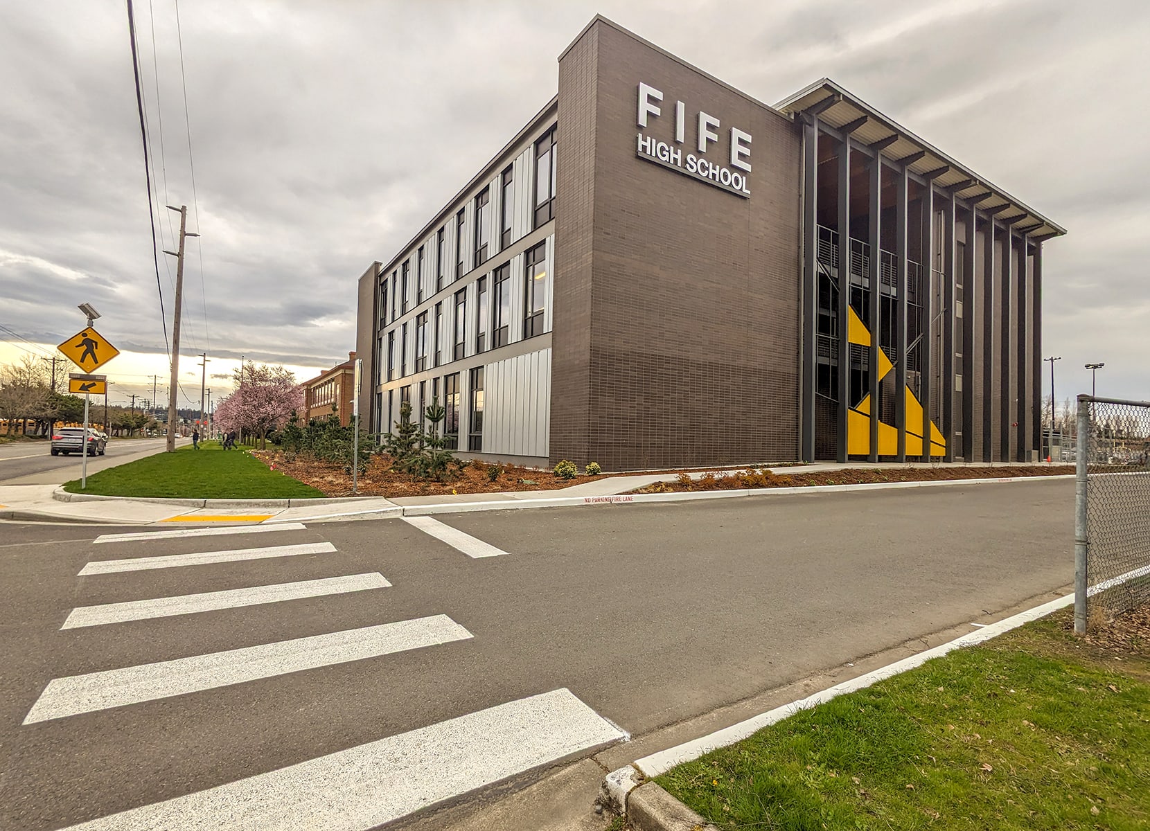 AHBL provided civil engineering and landscape architecture services for the new 31,000 SF STEAM Center of Innovation at Fife High School. The facility, located west of the existing school building along 20th Street East, features 11 new teaching stations to support the science, technology, engineering, art, and math curriculum. The project includes a new central utility plant designed to meet current and future campus needs. Civil engineering services encompass drainage and site grading plans, private sanitary side sewer connection, on-site water main extension, and paving modifications between the existing high school and the new STEAM Center. Landscape architecture services included planting, irrigation, site amenities, pedestrian paving, courtyards, and plazas, ensuring compliance with the City of Fife’s Green Factor landscaping requirements.